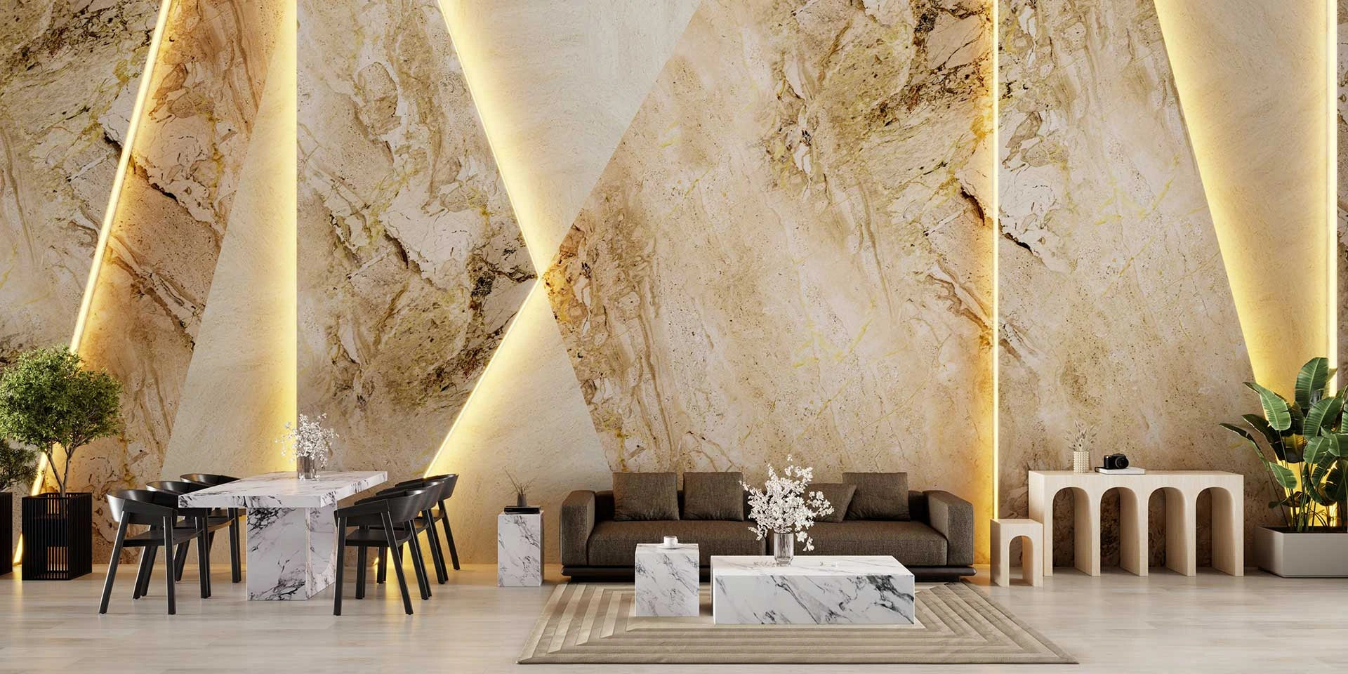 Explore the beautiful all new faux stone collection of tables in Bulgari White and Travertine
