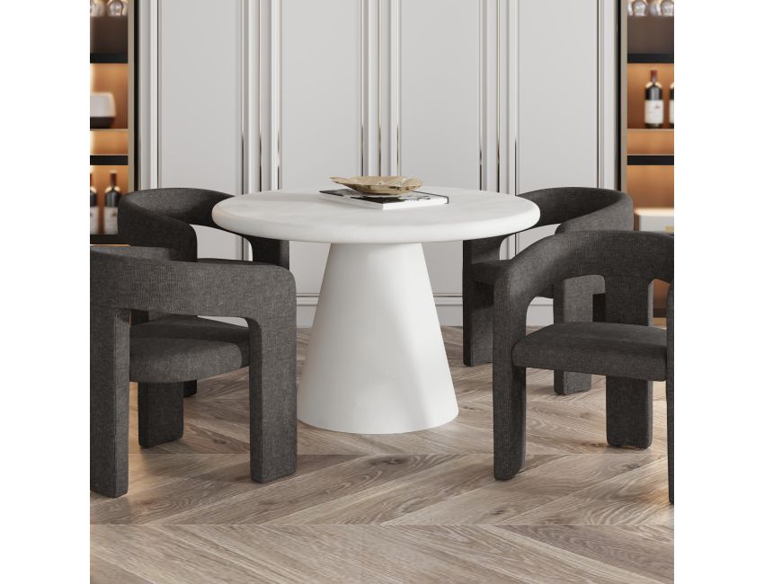 There is no doubt that white textured pieces can create a serious style statement in any space. This dining table is no exception - the cement finish and subtle texture gives an earthy, grounded look. The contemporary shape makes the Galio the perfect modern piece. Mix and match with a variety of chair styles to create your own unique look in a formal or casual dining setting.