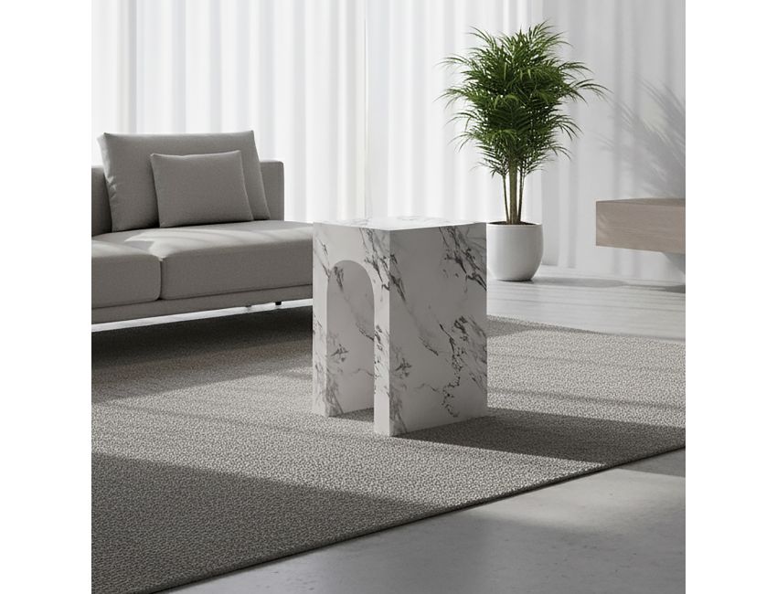 Sustainable and long-lasting furniture doesn't have to be hard to find - these commercial-grade tables are ready to stand up to any test. The durable build and finish of this arched side table is resistant to staining, heat, and scratches. It has a high weight capacity, so no need to worry if someone decides to use it as a place to sit while waiting in the lobby or reception area. The beautiful Bulgari white marble finish is a great way to elevate the look the of any space.